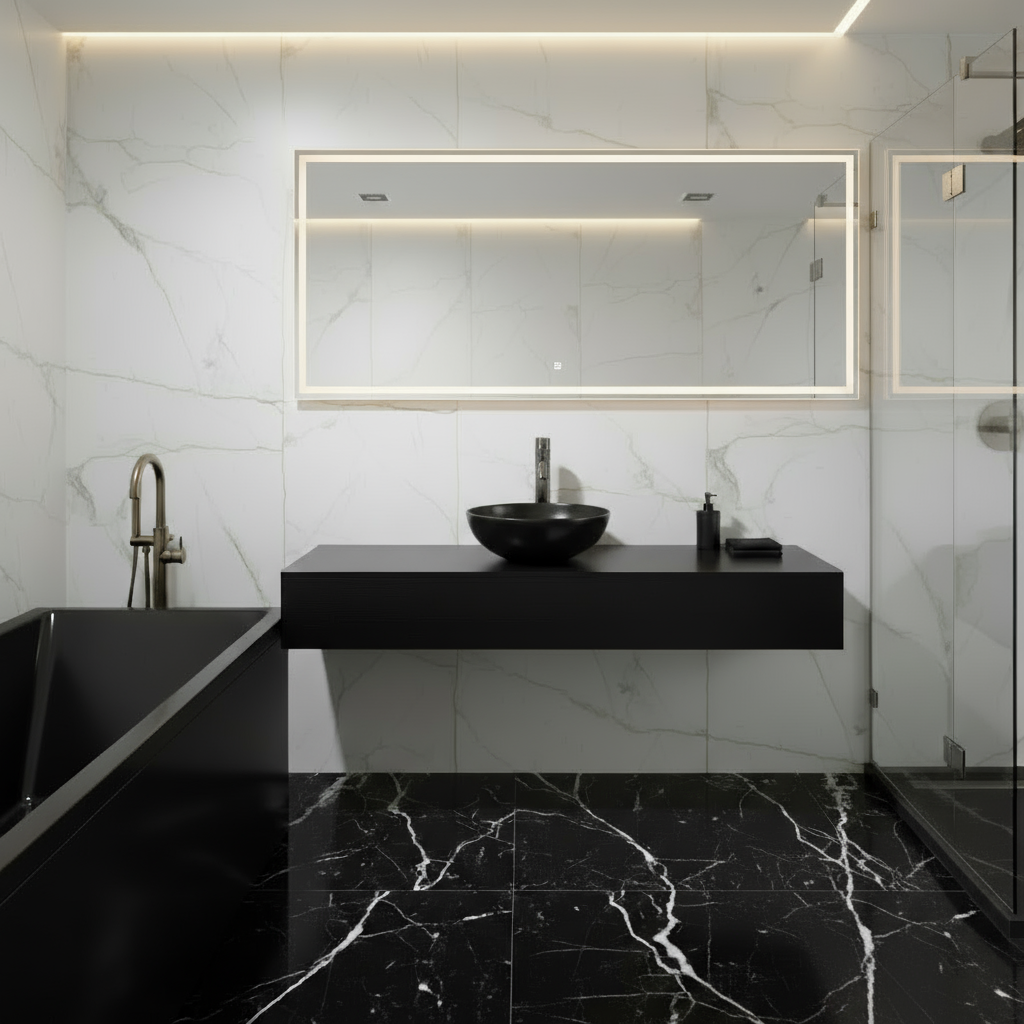Tijdloze esthetiek geïnspireerd op Italiaans badkamerdesign.