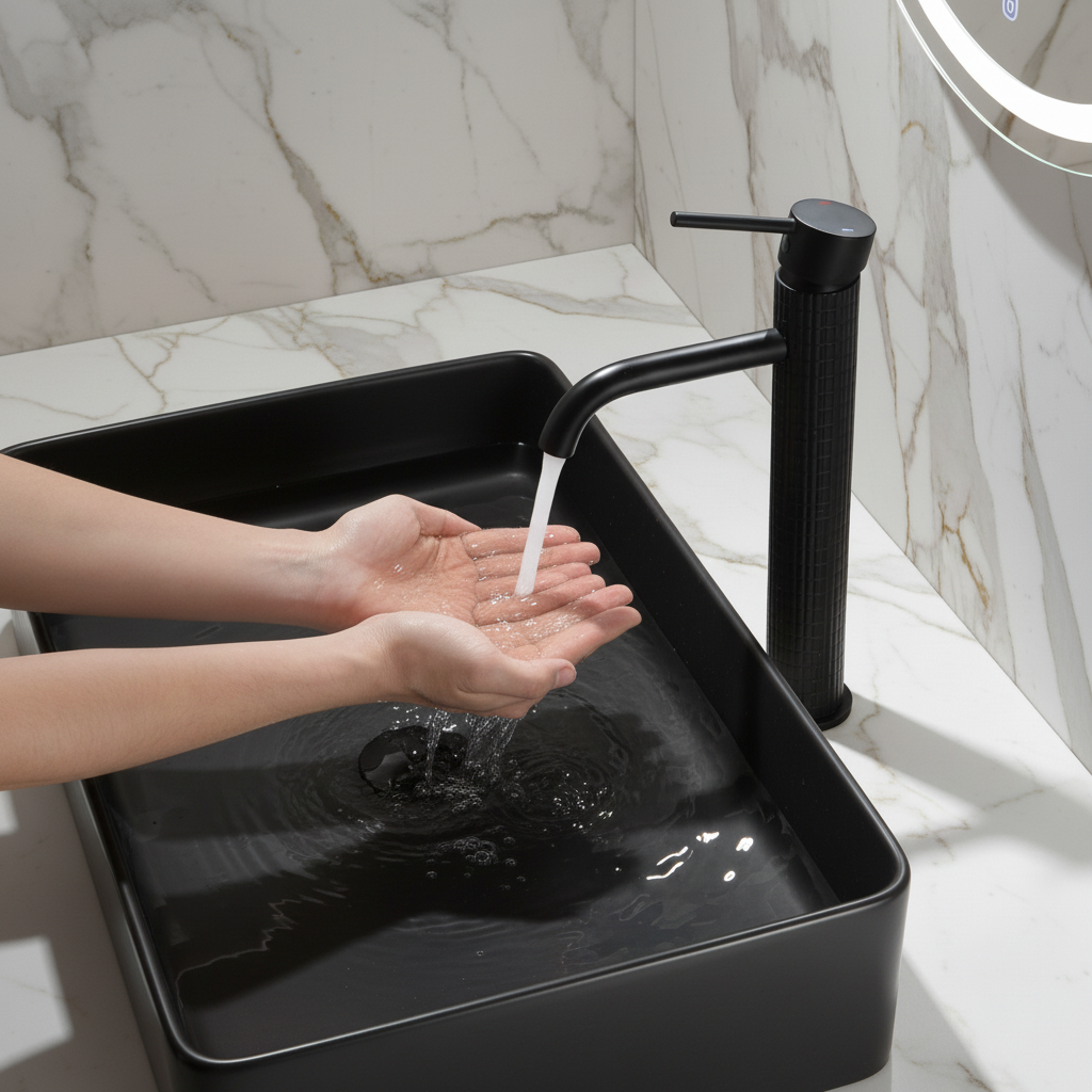 Ja. Deze inbouwwastafelkraan is ontworpen om perfect te werken met opzetwastafels. Het uitsteeksel en de hoogte van de uitloop zijn zorgvuldig geproportioneerd om een ​​comfortabele handvrijheid en een gecontroleerde waterstroom boven het bassin te garanderen.