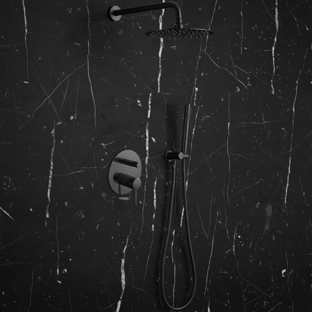 Angelica inbouwdouchesysteem – regendouche en handdouche – matzwart