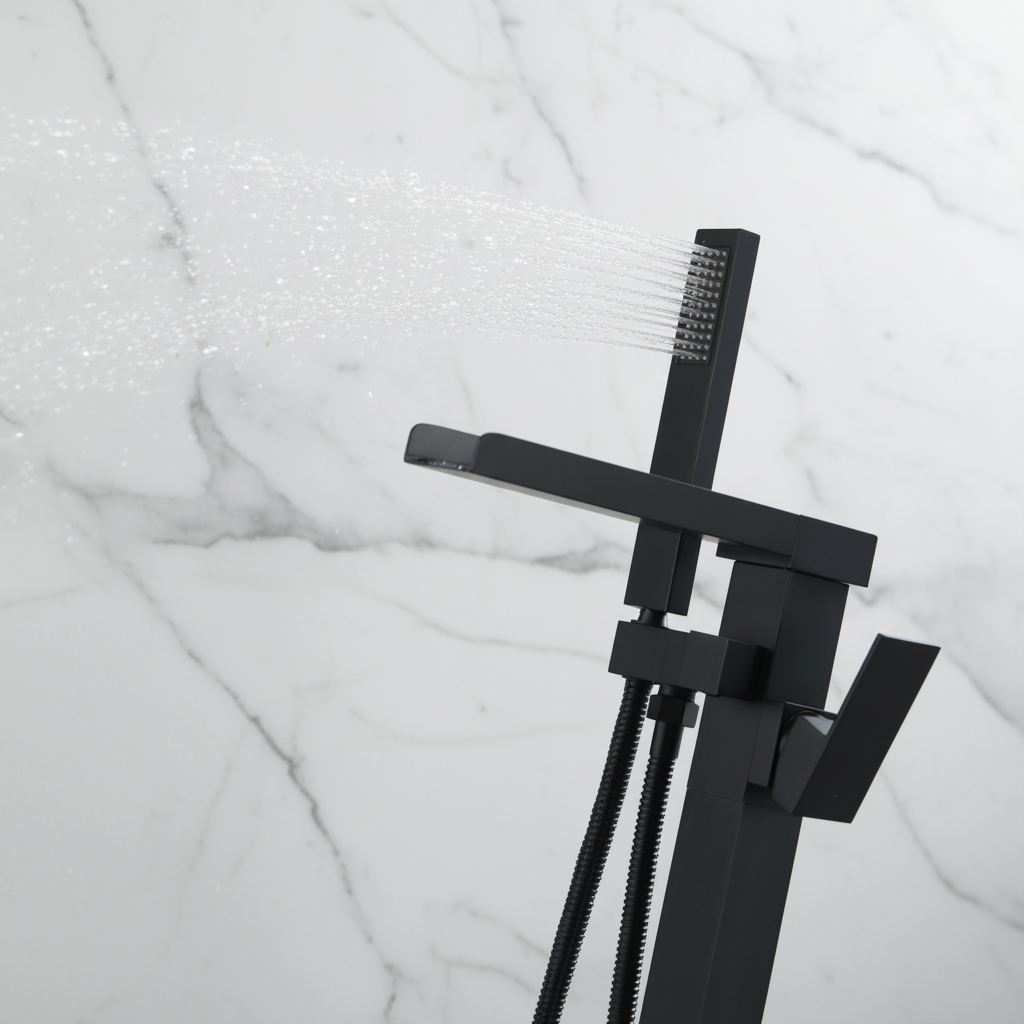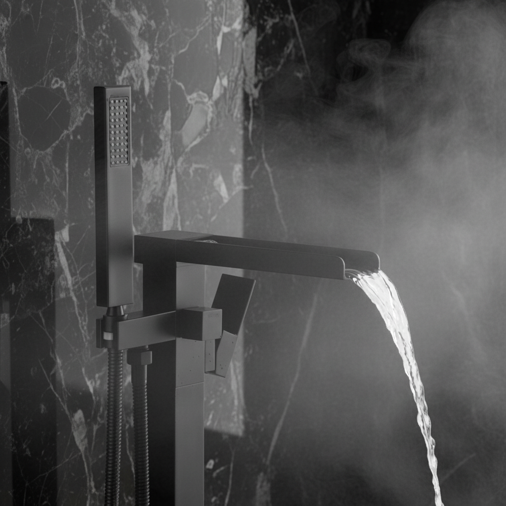 Lisandro Vrijstaande Badkraan – Watervaluitloop – Matzwart